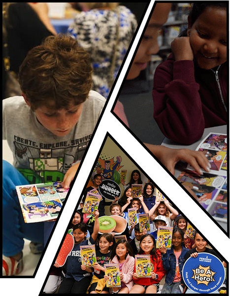 Bring the adventure and lessons of Hunger Action Heroes Unite! into classrooms near you. The Classroom Superhero Set includes the comic book, a fully developed curriculum that teaches children about hunger, food waste, empathy, and empowerment, and more!